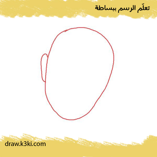 رسم الشكل المبدئي للرأس والأذن، حيث كل ما عليك فعله هو رسم شكل شبه بيضوي منحني قليلاً ورسم أذن واحدة فقط.